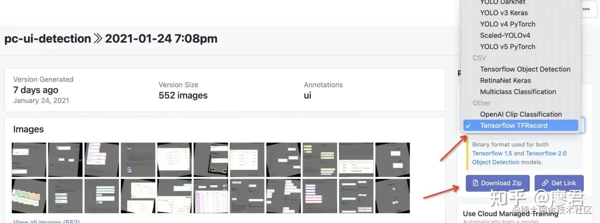 注意:这里选择tensorflow tfrecord格式下载即可。