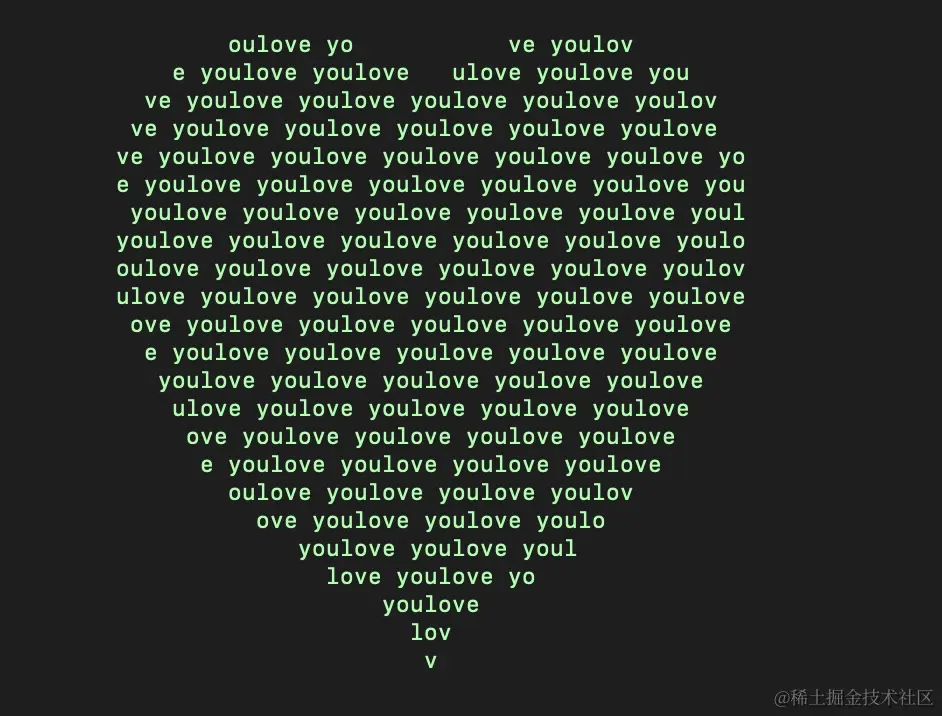 比如你喜欢一个妹纸,可以用代码的方式去表白,代码如下: