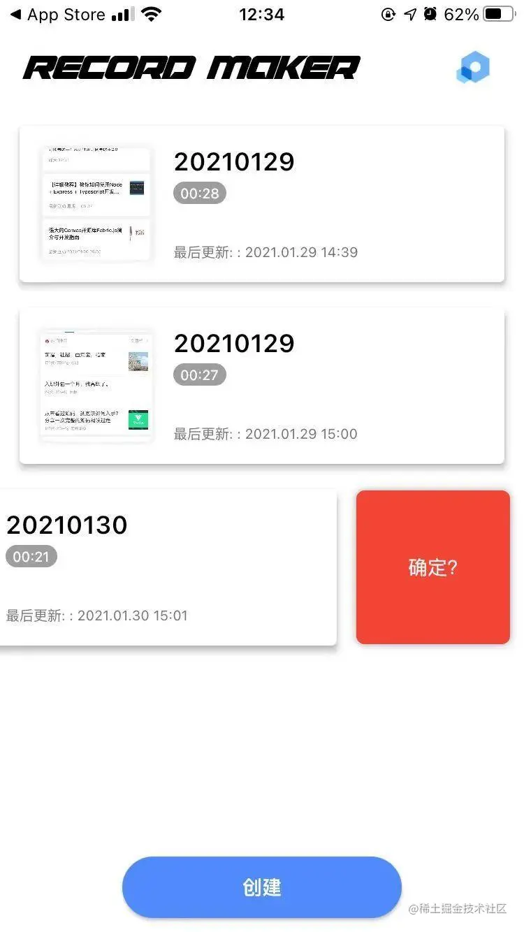 回到首页,在列表中就出现了生成好的视频,侧滑支持删除列表数据。