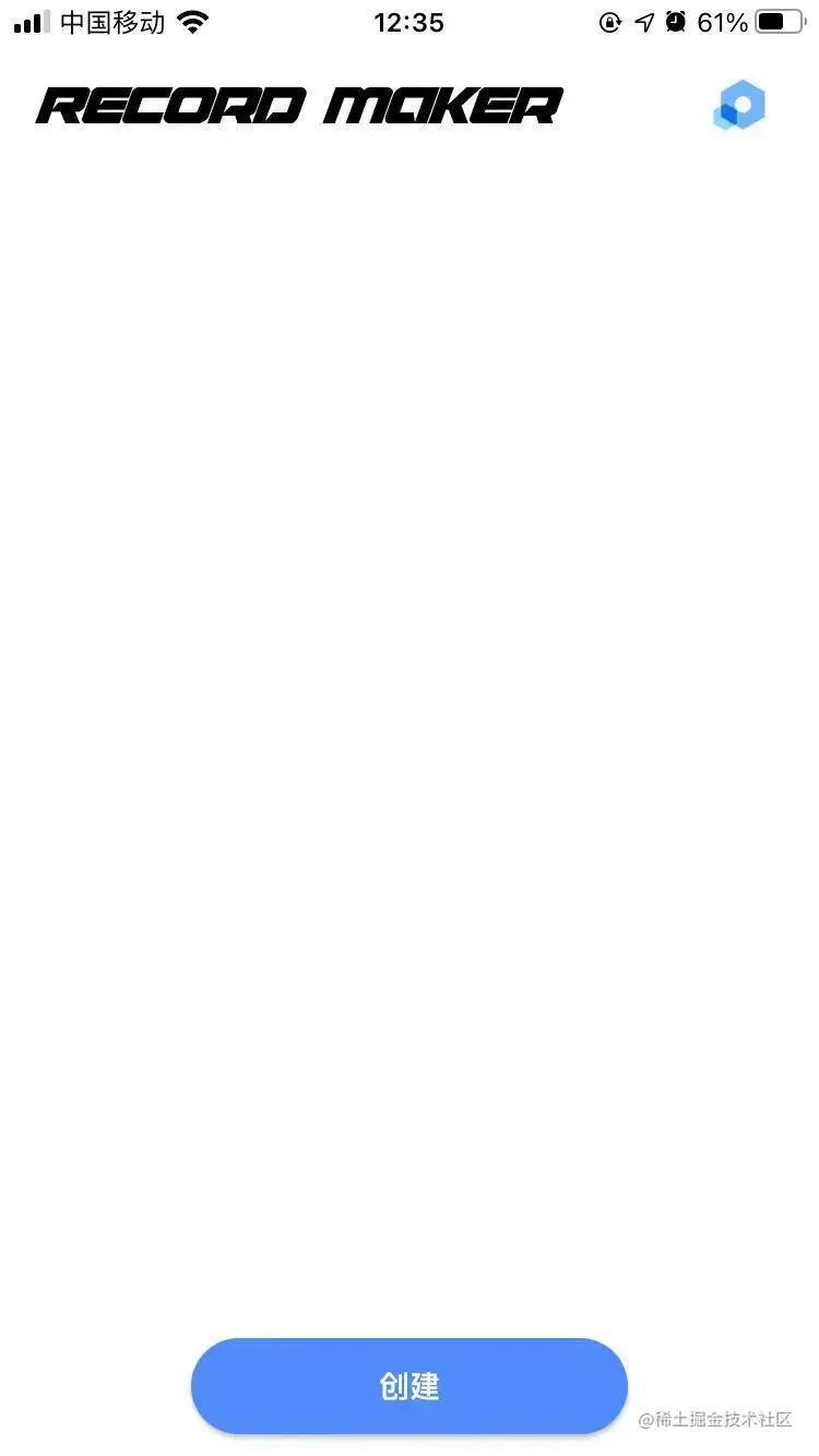 下载之后,点击图标进入App首页,顶部的标题栏左边是一个艺术字体的logo,右边是一个导航图标,然后下面是一个创建按钮。