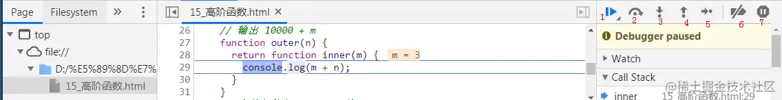 3表示进入函数内部执行。