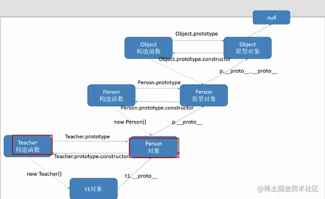 当实例对象调用方法时,先查找实例方法,没找到再通过__proto__指针去找Person原型对象的方法,没找到又会再通过Person原型对象的__proto__指针去找Object原型对象的方法,没找到的话最后再通过Object原型对象的_proto__指针得到null值,查找结束。只要其中一层有该方法,实例对象就可以调用成功了。
