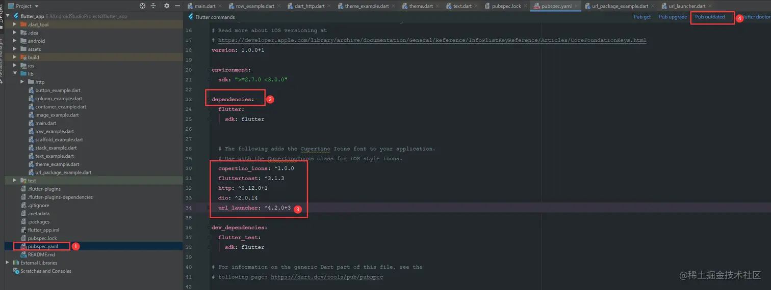 2. 在pubspec.yaml文件,dependencies下添加名称和版本