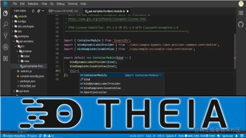 Theia 是一个基于 TS 开发的开源 IDE 框架,基于它我们可以开发出自己定制化的开发工具,它可以部署到云端使用,也可以打包成桌面应用。