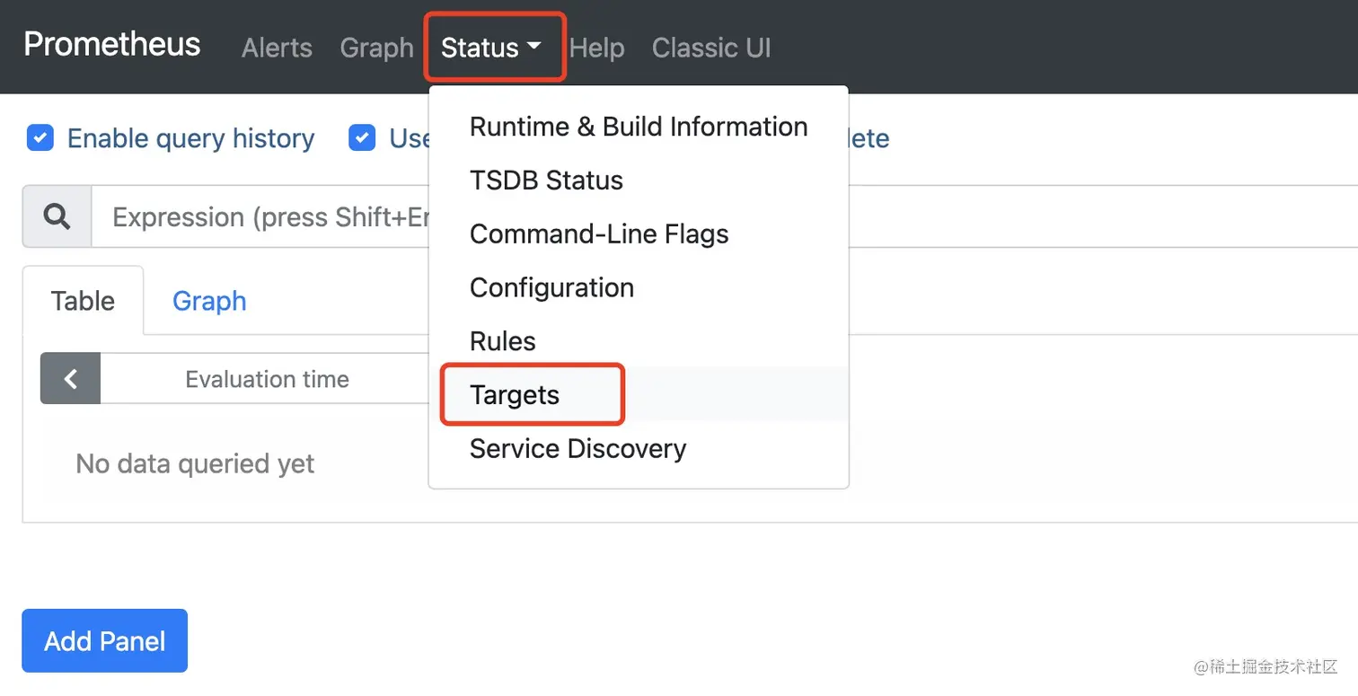 在浏览器中输入http://localhost:9090,可以正常看到界面,则说明Prometheus启动成功