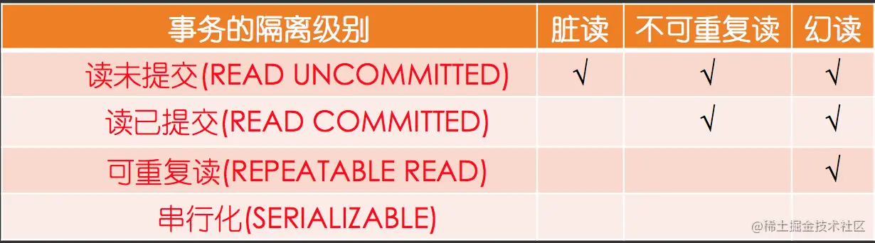 与原子性、持久性侧重于研究事务本身不同,隔离性研究的是不同事务之间的相互影响。隔离性是指,事务内部的操作与其他事务是隔离的,并发执行的各个事务之间不能互相干扰。严格的隔离性,对应了事务隔离级别中的Serializable (可串行化),但实际应用中出于性能方面的考虑很少会使用可串行化。