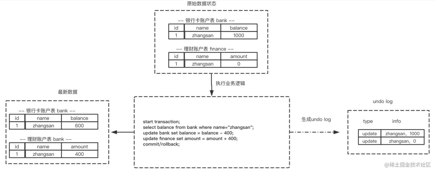 当事务A在T3时间节点读取zhangsan的余额时,会发现数据已被其他事务修改,且状态为未提交。此时事务A读取最新数据后,根据数据的undo log执行回滚操作,得到事务B修改前的数据,从而避免了脏读。