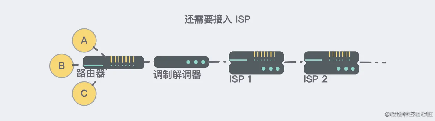 (相信不少小伙伴都还记得需要「拨号上网」的日子,这就是把网络接入电话基础设施的过程,现在已经优化了)