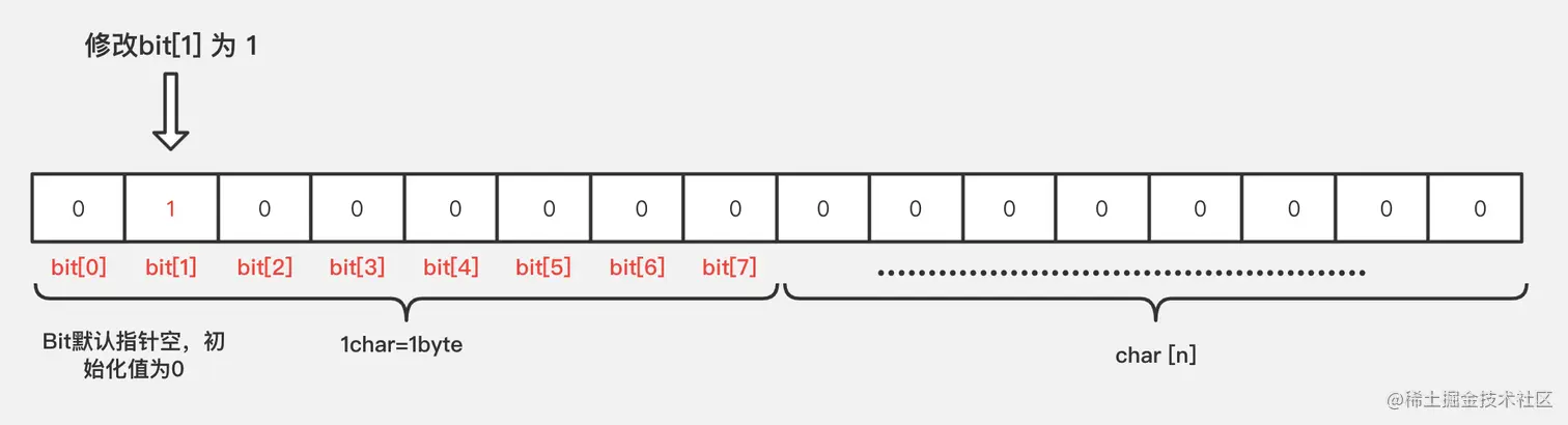 我们上访的操作 setbit newbit 1 1 就是将bit位为1,也就是第二个bit设置为1,bit为数组