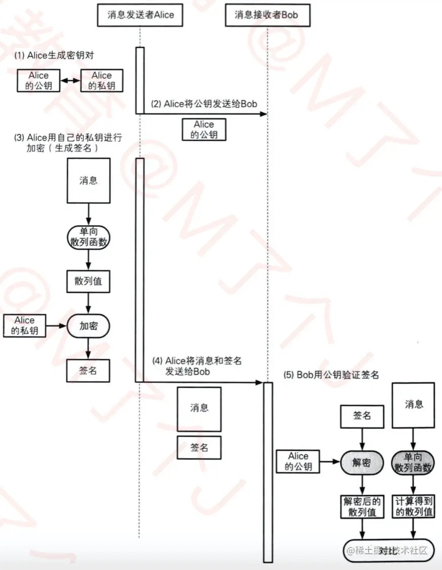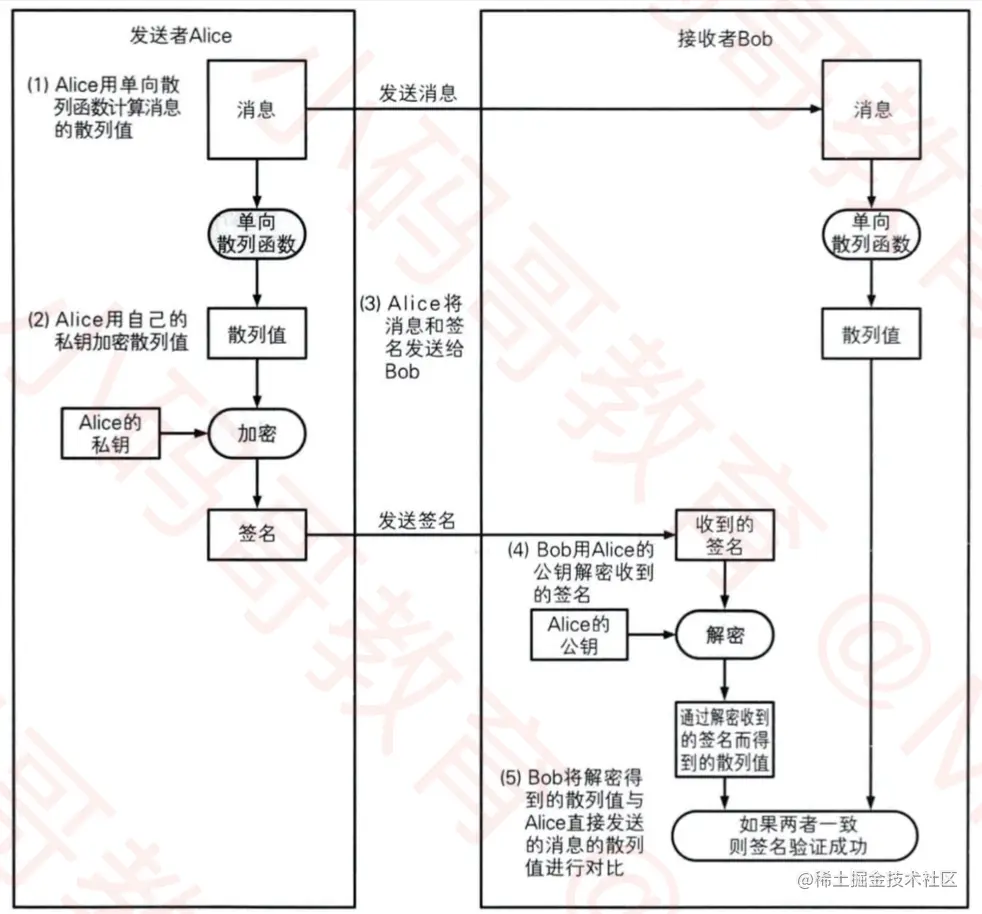 非对称加密) - Alice把第4、5步的加密结果,一并发送给
