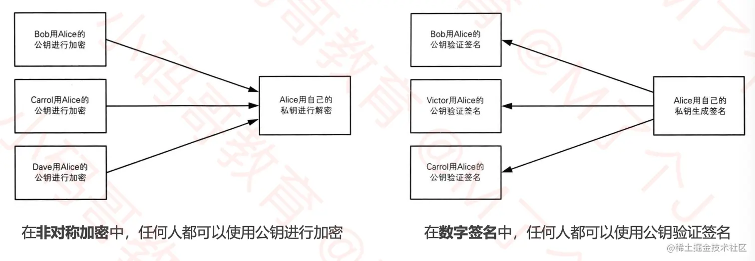 - 由私钥加密的密文,必须使用与该私钥对应的公钥才能解密