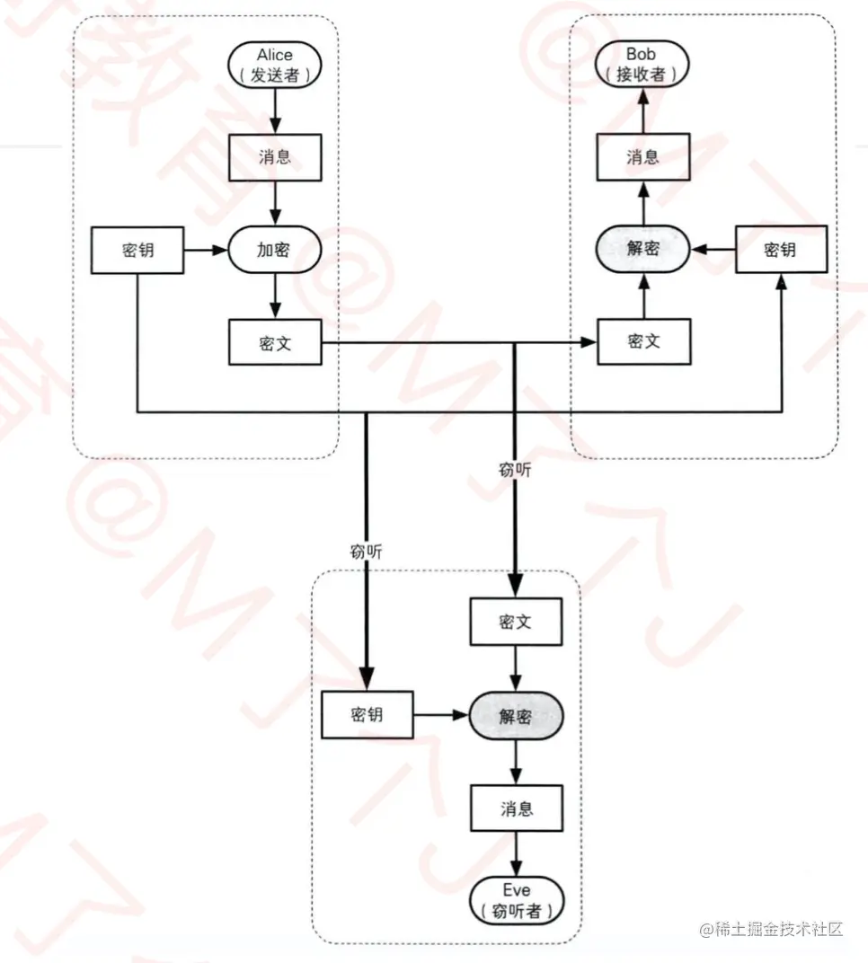 - 只有将密钥发送给Bob,Bob才能完成解密