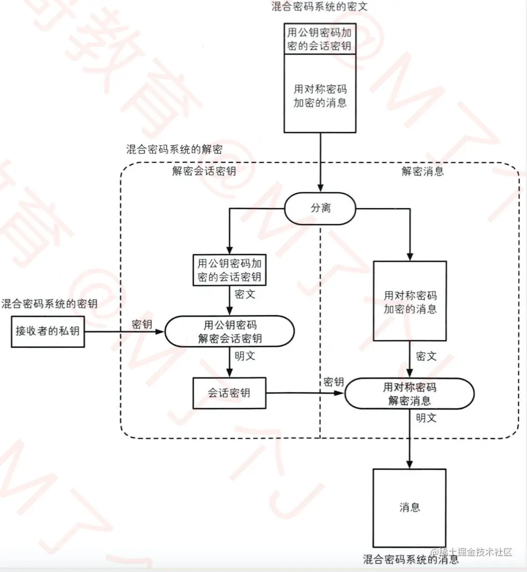 非对称加密算法进行解密) - 利用会话密钥解密发送过来的消息(使用的是