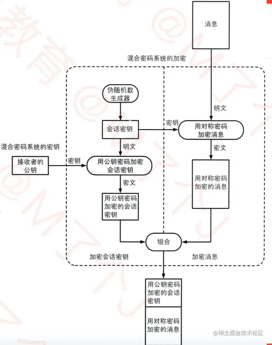 对称加密的密钥,加密消息 - 用消息接收者的公钥,加密会话密钥