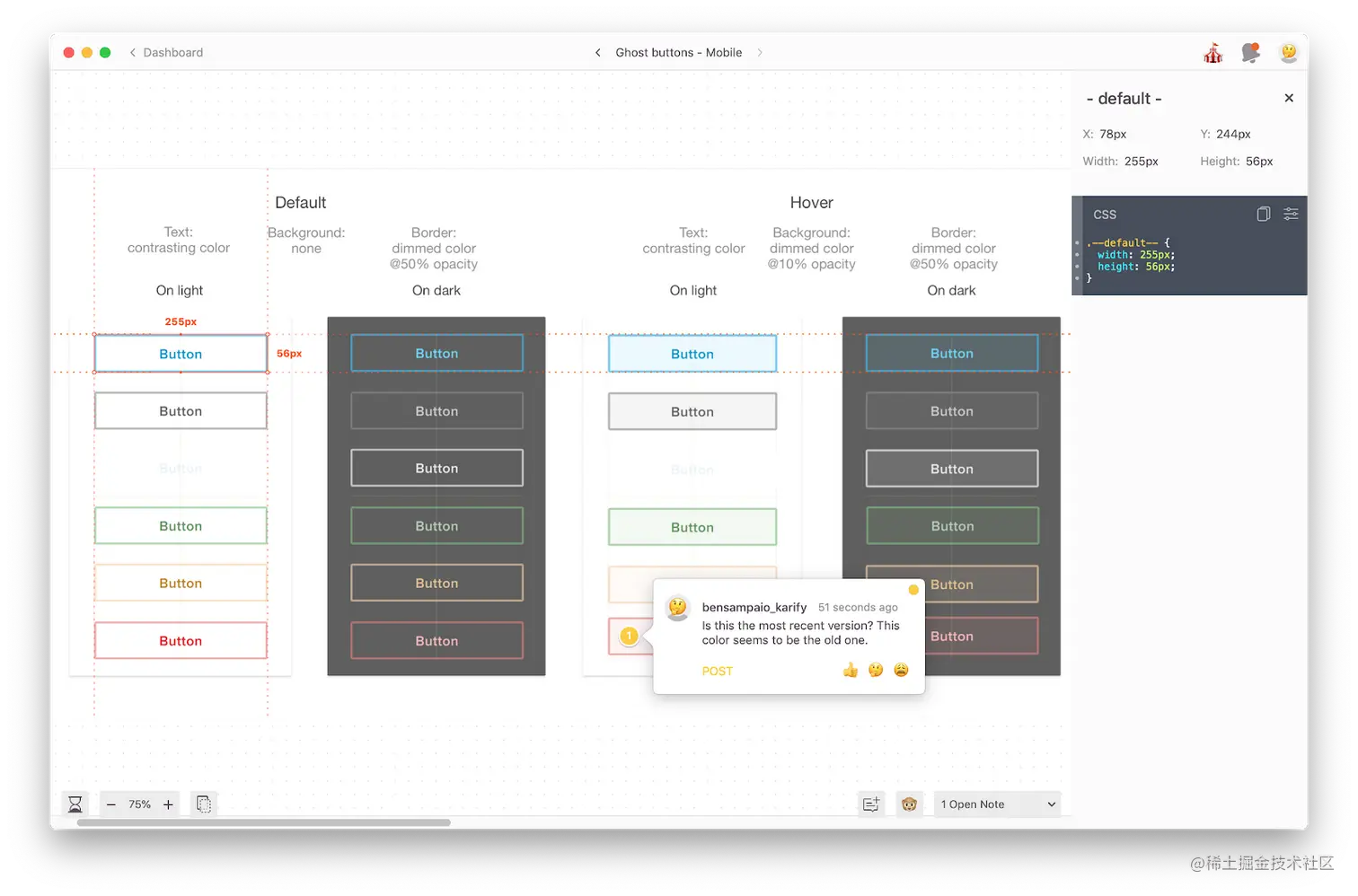 在 Zeplin 中协作开发的按钮组件。