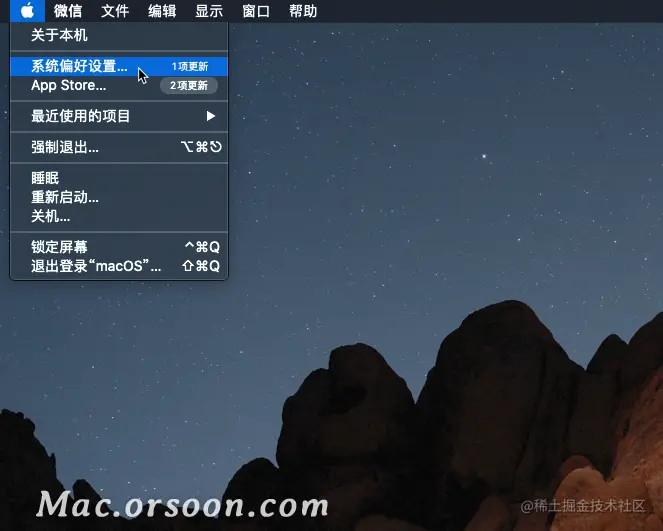 1.点击苹果图标,选择系统偏好设置,如图所示: