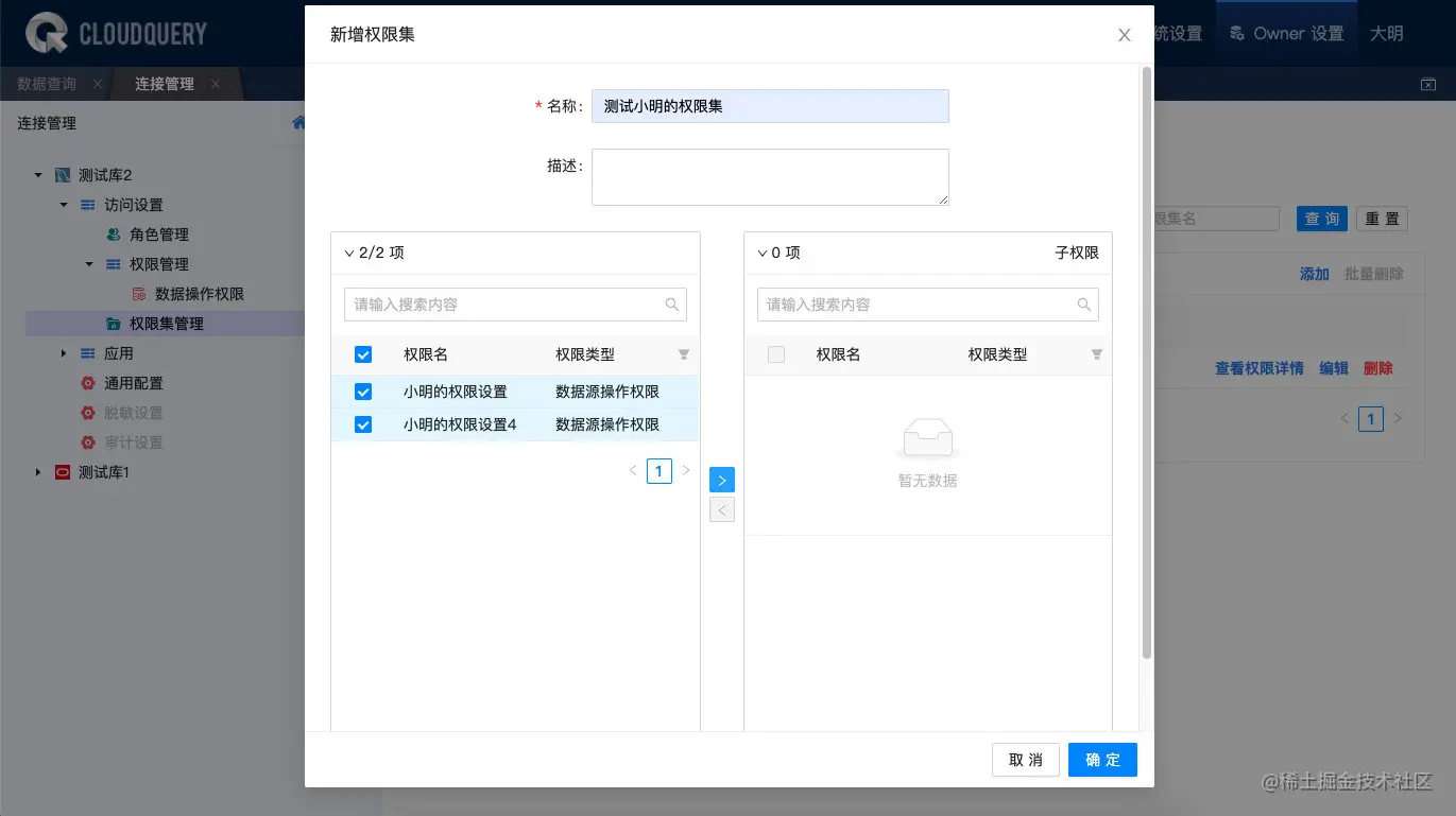 CloudQuery 对用户分配系统权限时,需要先创建一个角色,然后再进行授权。