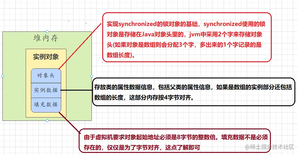 在JVM中,对象在内存中的布局分为三块区域:对象头、实例数据和对齐填充。如下: