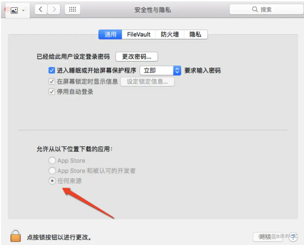 打开「安全性偏好设置」- 「安全性与隐私」 – 「通用」勾选为任何来源锁定后试一次;