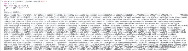 对于从事前端的同学应该知道这会存在很严重的性能问题,由于Javascript是存在很多的标准的,浏览器为了适应这些标准从而将DOM元素做的非常复杂,这大大增加了我们操作DOM背后的工作量。这是一个DIV节点的第一层结构。