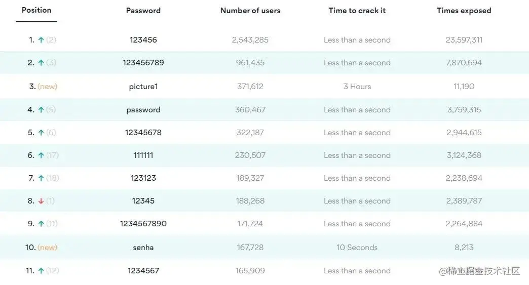 大家可以检查一下自己使用的密码是否在列表中,如果有,最好是升级或者更换一下。