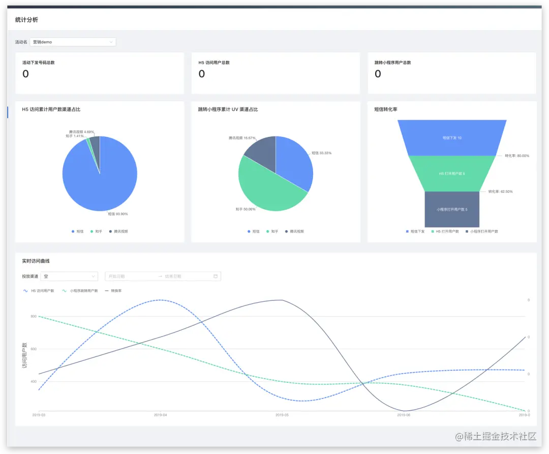 创建运营活动后,即可针对不同活动进行数据统计分析,指标包括留存率、用户画像等,助力活动精细化运营。