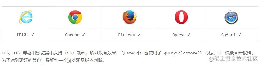 WOW.js 依赖 animate.css,所以它支持 animate.css 多达 60 多种的动画效果,能满足您的各种需求