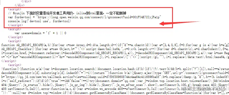 我们直接打开网页源代码一看究竟,我们翻到网页最底端,发现优秀的程序员给了我们注释, inline到 html 里面,给开发者工具使用。(这个后文会再此提及为什么要这样做)