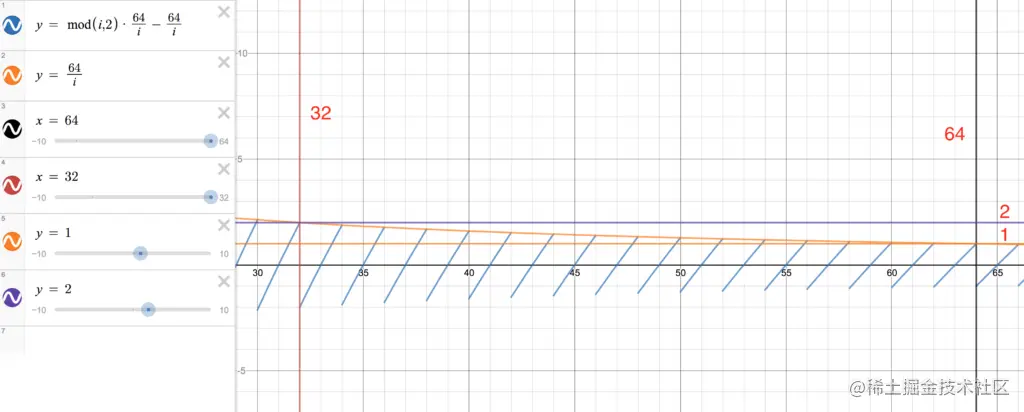 如果我们绘制 64/i ,所对应的图表展示如下: