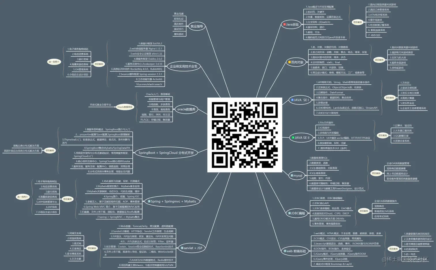 最后给想要学习Java的小伙伴一个清晰的学习知识路线图,还有一份Java学习资料,如有需要扫描二维码领取!
