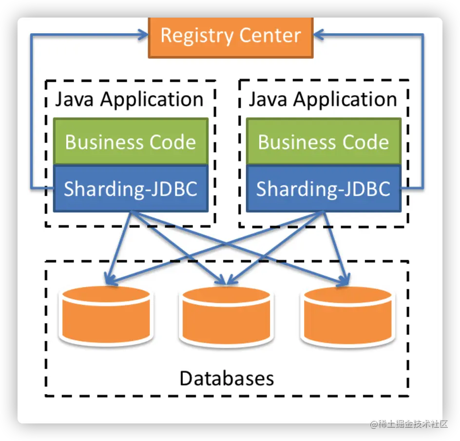 (2)Client模式:还是借用shardingSphere官方文档的图来说明,如下图所示: