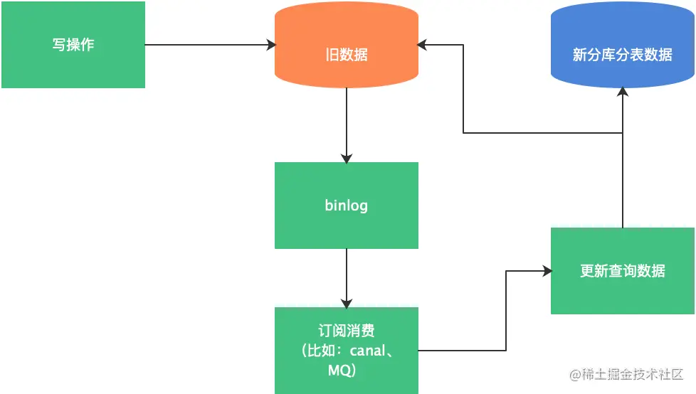 - 数据迁移:我们需要把旧分片数据迁移到新的分片上,这个方案与上面提及的历史数据迁移一样,就不过多赘述了;