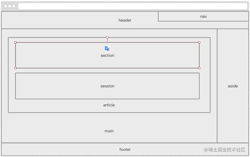 HTML 语义化 NickH VIP.1 初学乍练 2021-02-01 117 阅读1分钟 <header> 头部 <footer> 底部 <aside> 侧边栏 <main> 主体 <article> 文章 <session> 分段