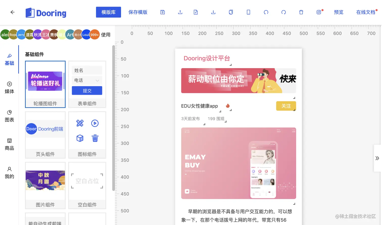 目前 H5-Dooring 可视化编辑器也成功更新了开发和部署文档 ,感兴趣的朋友可以感受了解一下.