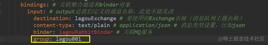 lagouRabbitBinder: # 给Binder定义的名称,⽤于后⾯的关联