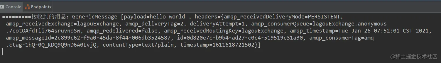 messageProducer.sendMessage("hello world ");