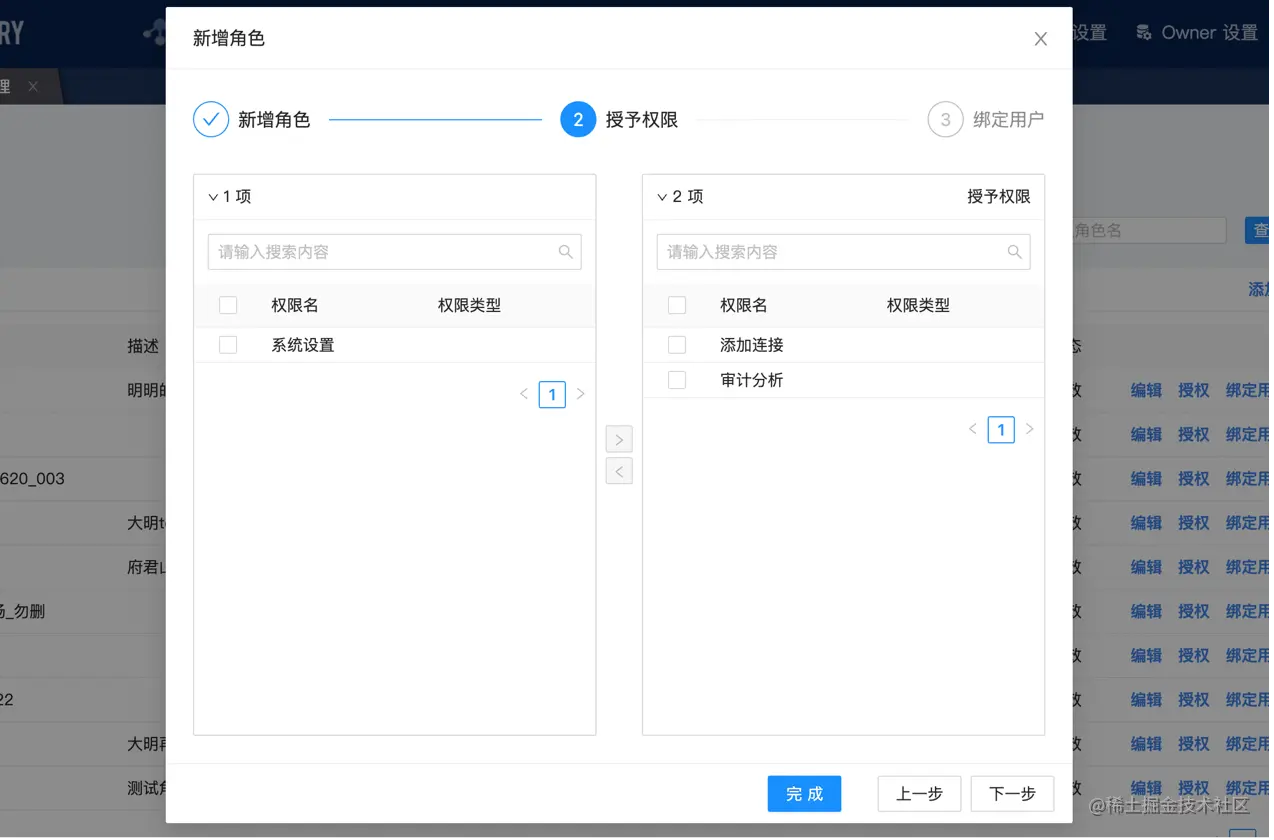 操作权限可以对用户进行访问连接和操作权限的分配。「Owner设置」-「连接管理」,在对应数据库下「权限管理」-「数据操作权限」中创建需要的权限,目前权限细粒度到表格,还没有到表格内行列权限。