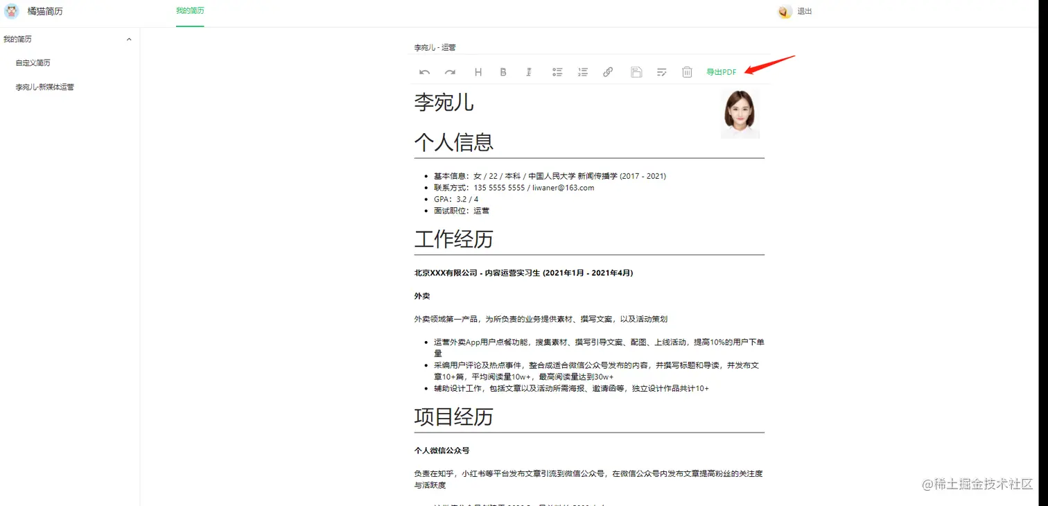 马上又到了“金三银四”,大家是不是又有了新的一年的规划。网上简历网站一大堆,但最后发现都是各种收费。最近发现了一个操作简单不收费的简历模板网站,分享给大家~ 1.橘猫简历,链接:cv.pictureknow.com/