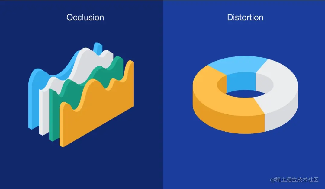 **当一个3D图形部分阻挡了另一个图形时,就会发生遮挡。**这是在自然世界中模拟空间的结果,在自然世界中,对象的X,Y和Z坐标不同。在数据可视化中,遮挡会遮盖重要数据并创建错误的层次结构,其中无遮挡的图形显得尤为重要。