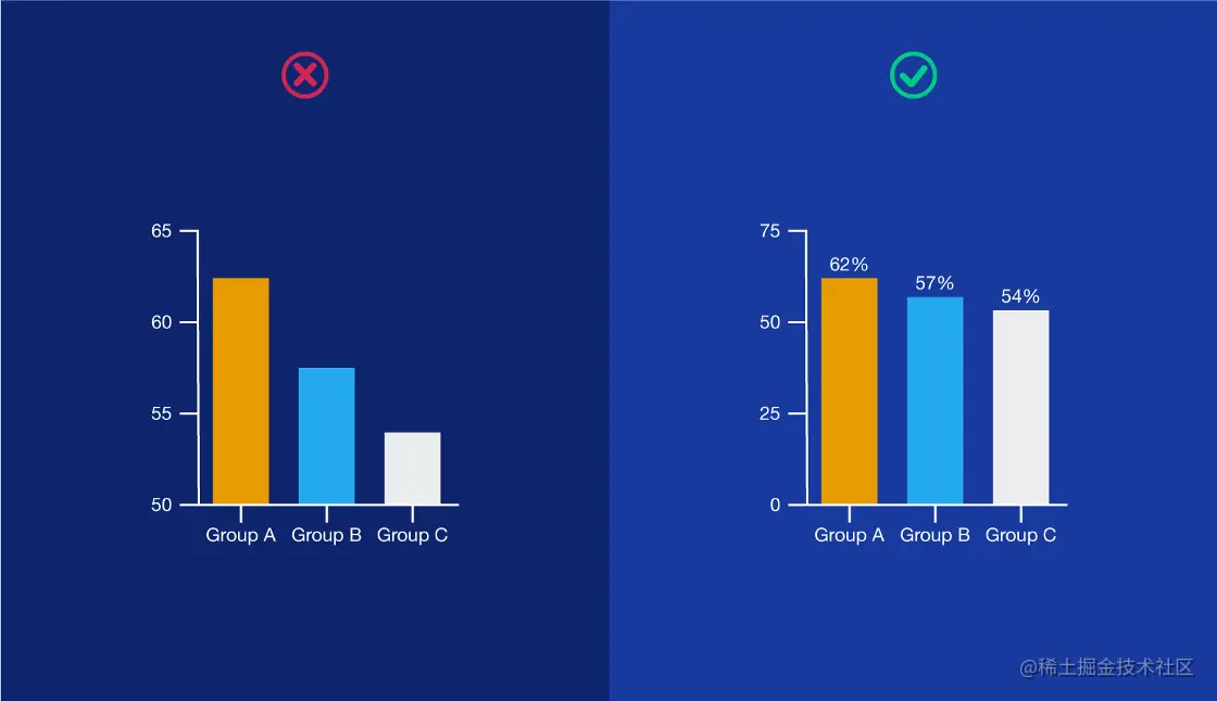 公平地说,误导性的可视化并不总是刻意去产生的,可能是一些细节没有被注意到,而导致的误差出现。但即使是无意识的错误也会误导观众。眼睛令人印象深刻,人类总是会倾向于减少自行思考以寻求快速的信息获取。所以视觉和认知必须是所有数据可视化设计中的关键考虑因素。