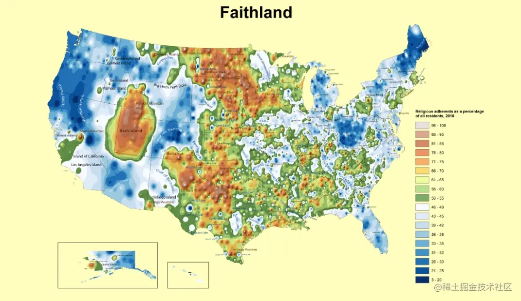 数据变化有时很大,例如根据地理区域衡量收入水平或投票习惯时。为了使可视化效果更加生动或美观,设计人员可以选择操纵图形上的比例值。