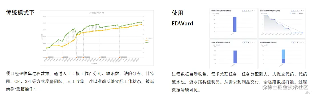4、打通CICD:ED-Ward自动收集过程数据,并从多维度度量团队效能,做到所有记录都有迹可循。