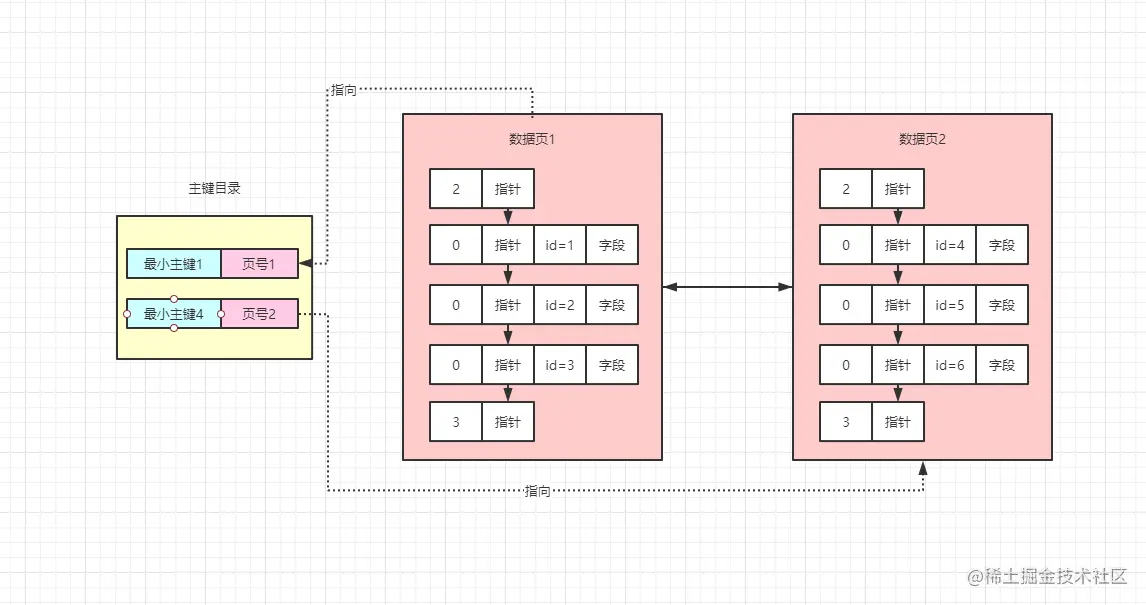 其实我们要实现主键索引,那首先需要一个索引目录。里面保存了最小主键id和数据页号的对应关系.如下图