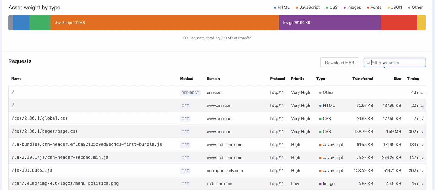 Calibre 显示网络请求优先级,这样你就可以确定所做的请求。调整优先级并改进性能。