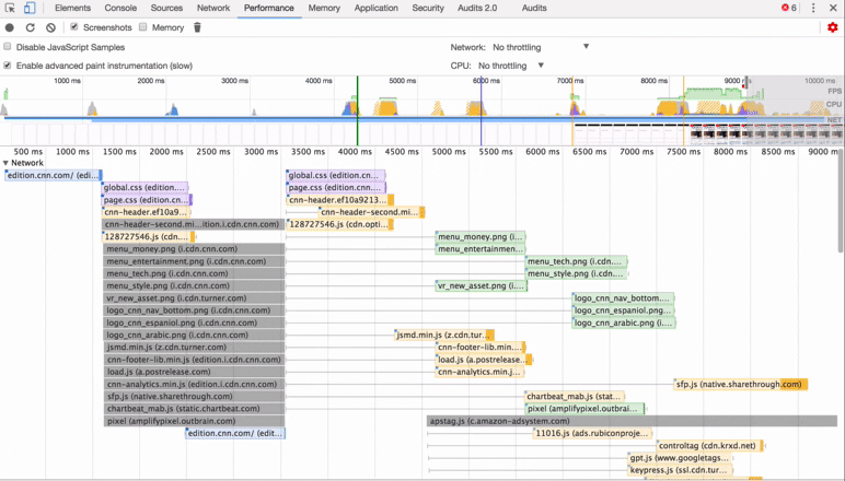 谢天谢地,现在我们有了很棒的工具。以CNN为例,我们来确认下当可视区域渲染时(也有人把它理解为“有用的区域”),静态资源是否被完全加载