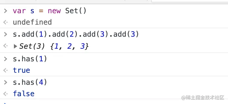 12、Set.prototype.has(value):返回一个布尔值,表示该值是否为Set的成员。