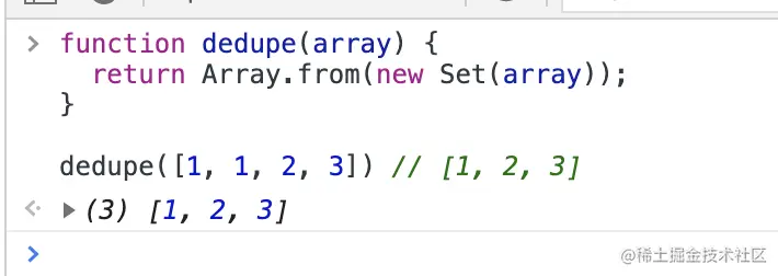 dedupe([1, 1, 2, 3]) // [1, 2, 3]