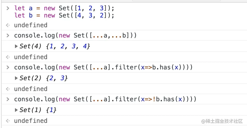 let b = new Set([4, 3, 2]);