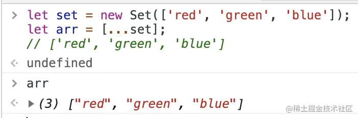 let set = new Set(['red', 'green', 'blue']);