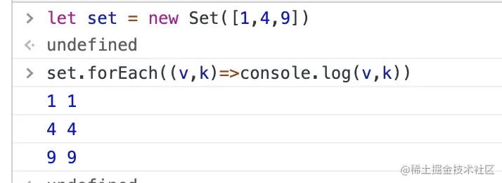 上面代码说明,forEach方法的参数就是一个处理函数。该函数的参数与数组的forEach一致,依次为键值、键名、集合本身(上例省略了该参数)。这里需要注意,Set 结构的键名就是键值(两者是同一个值),因此第一个参数与第二个参数的值永远都是一样的。